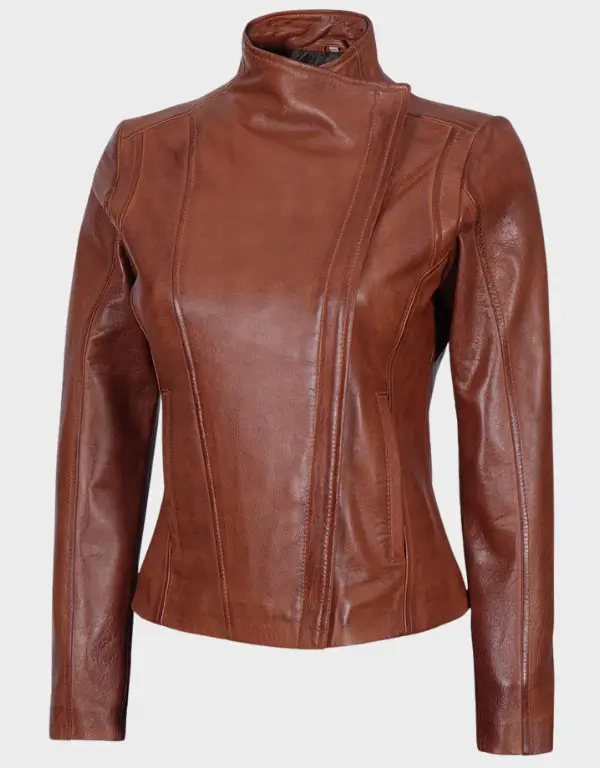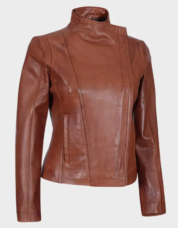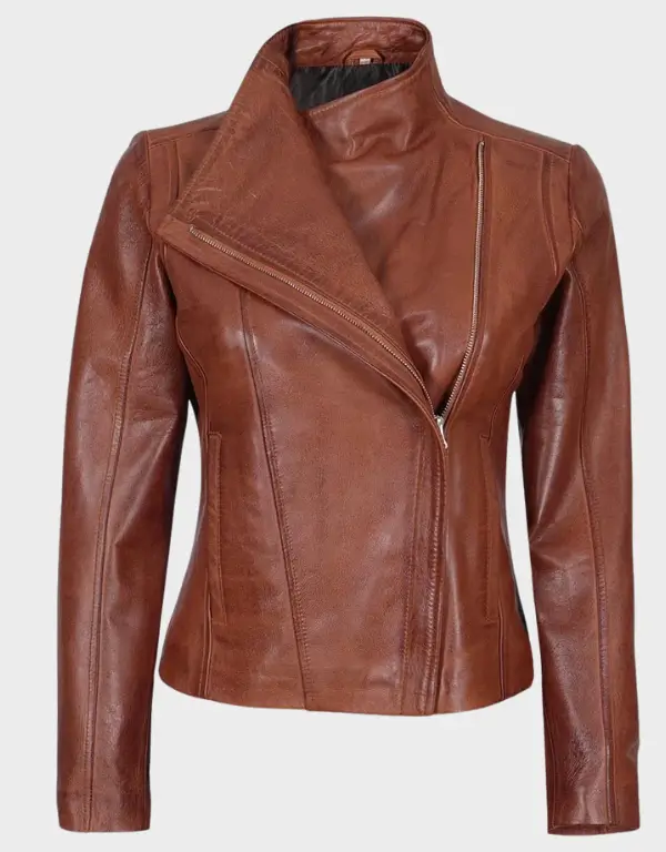 I absolutely love this jacket! the lambskin leather feels so soft and high quality and the cognac color is gorgeous exactly like the photos the fit is true to size and the lining is comfortable and warm without feeling bulky the asymmetrical zipper adds a cool edge and the pockets are practical for everyday use i’ve already gotten several compliments on it!