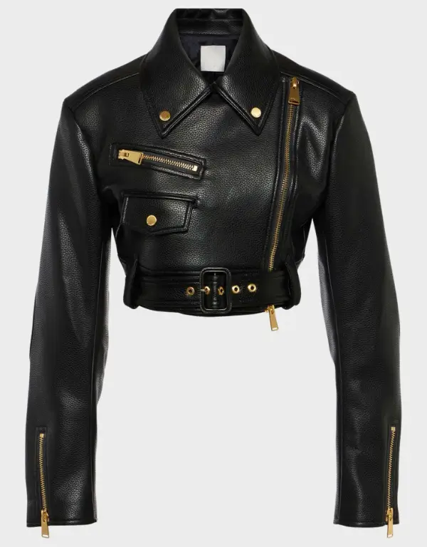 Cropped Leather Motorcycle Jacket
