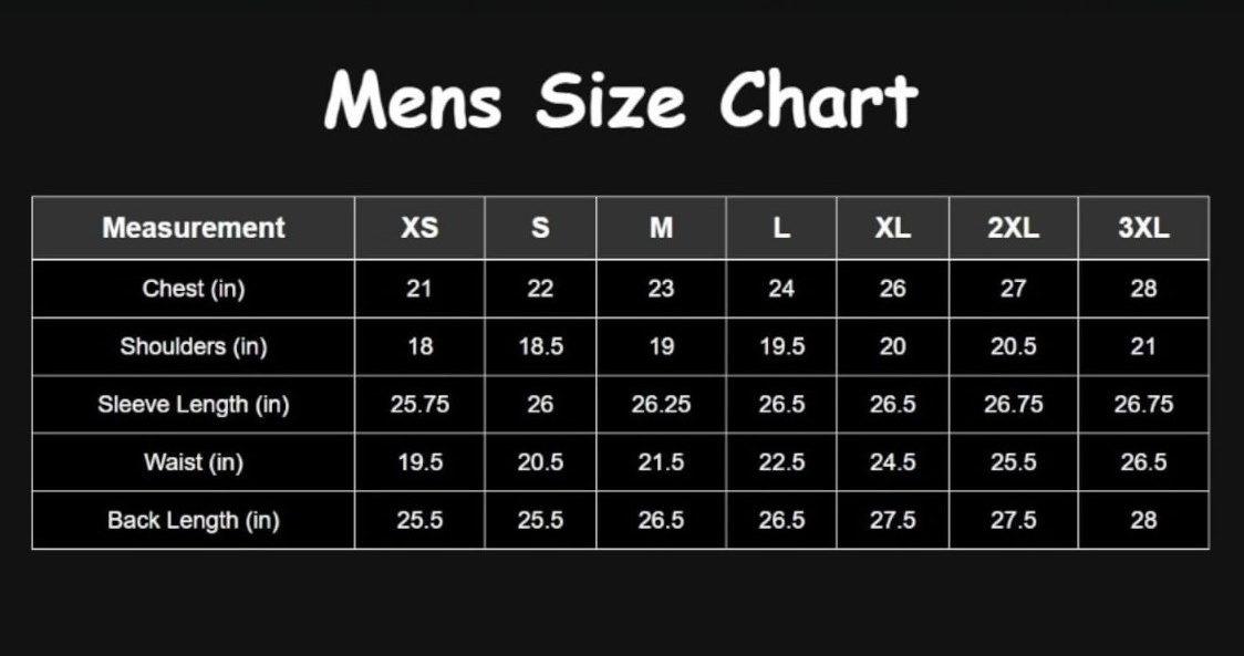 Mens Size Chart | The Leather Maker