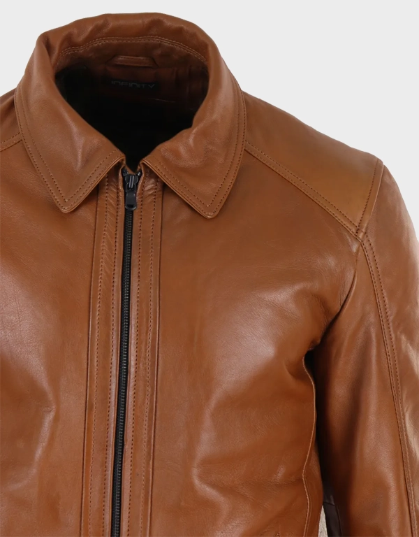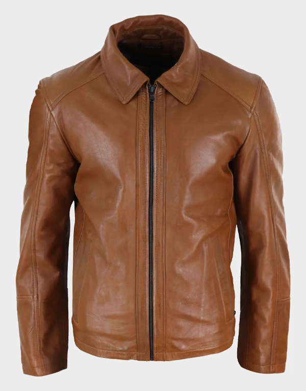 Discover the perfect blend of style and durability with the Men’s Classic Leather Zipped Jacket in tan brown. Crafted from genuine leather, this tailored fit piece features a classic biker look with a turn-down collar and straight zip closure. Practical side and internal pockets provide secure storage, while the polyester lining ensures comfort. Whether for everyday wear or adding a rugged edge to your outfit, it’s a versatile wardrobe essential.