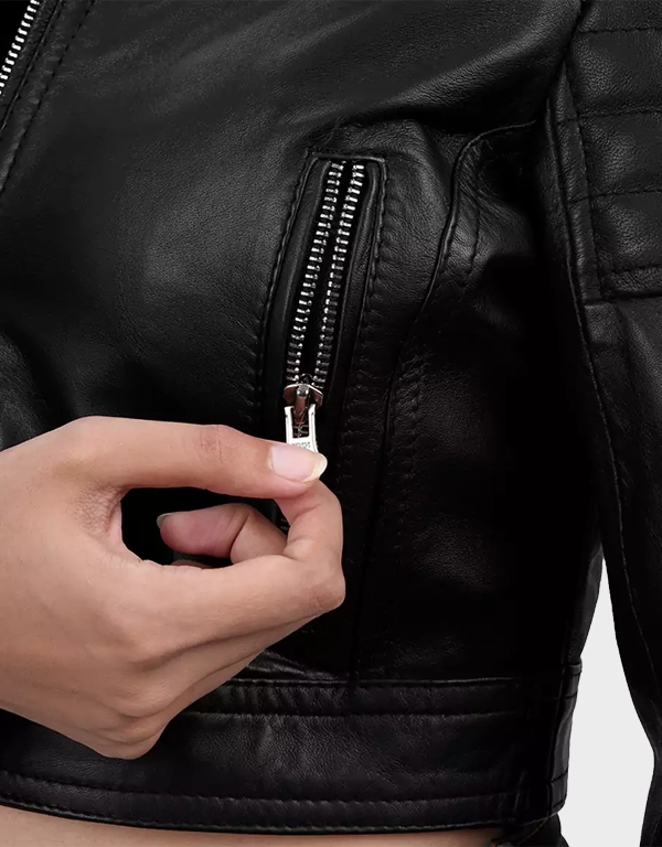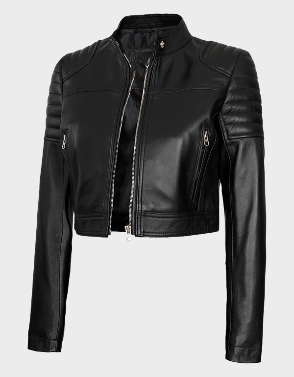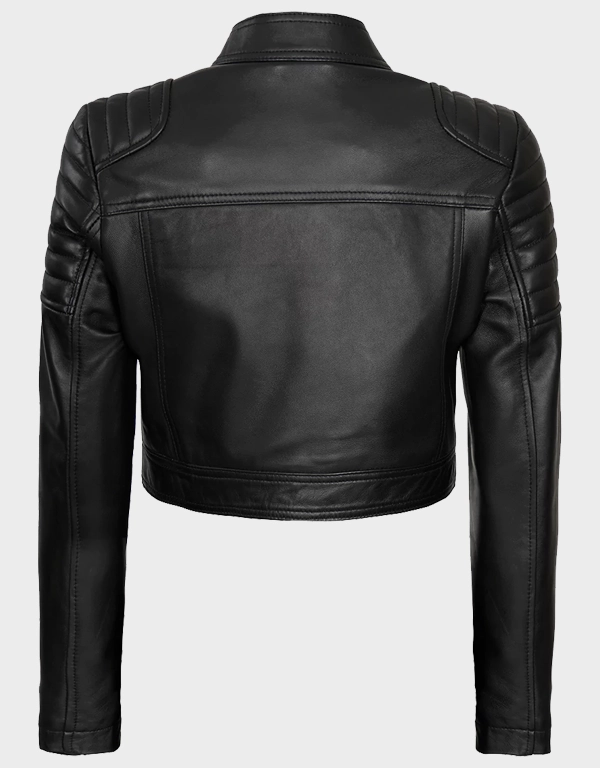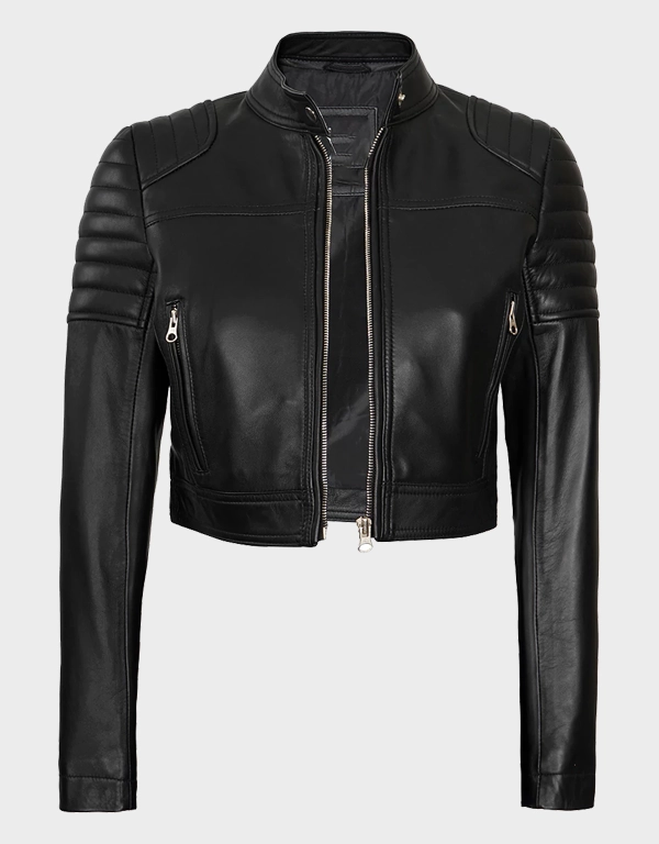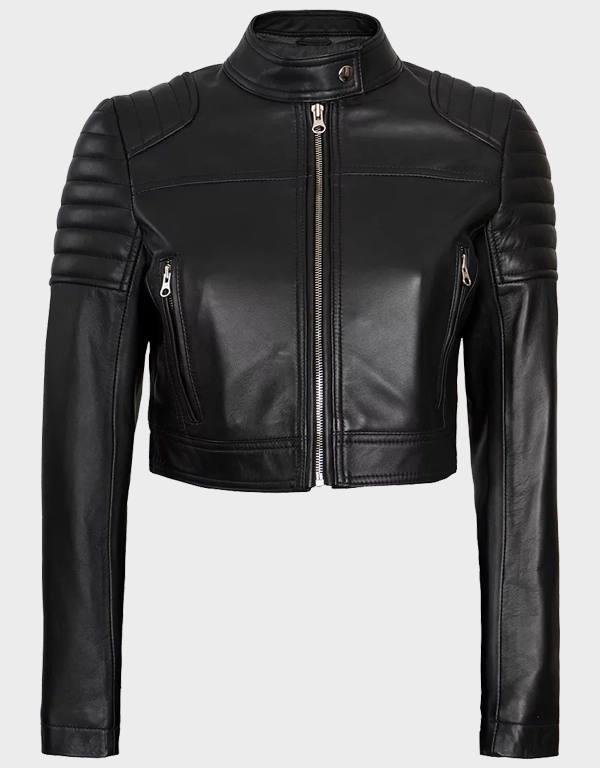 Women’s Black Cropped Style Café Racer Leather Jacket